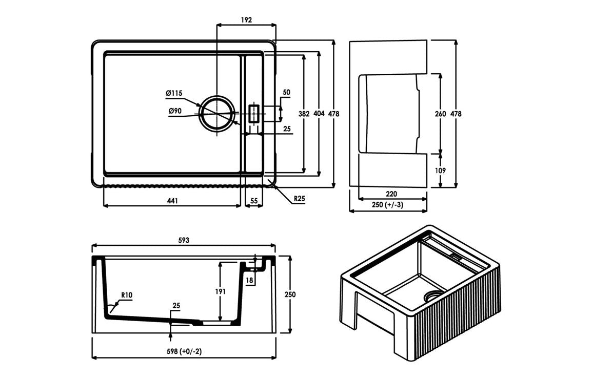 Cabinet Fit: Suitable for 600mm Belfast sink base units