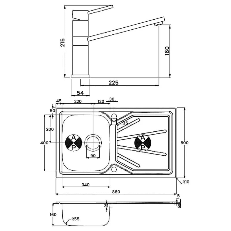 Abode Trydent 1.0 Bowl Inset Kitchen Sink with Specto Sink Tap 860mm L x 500mm W - Stainless Steel