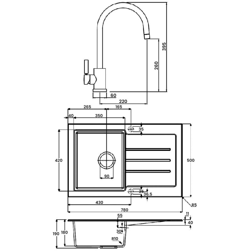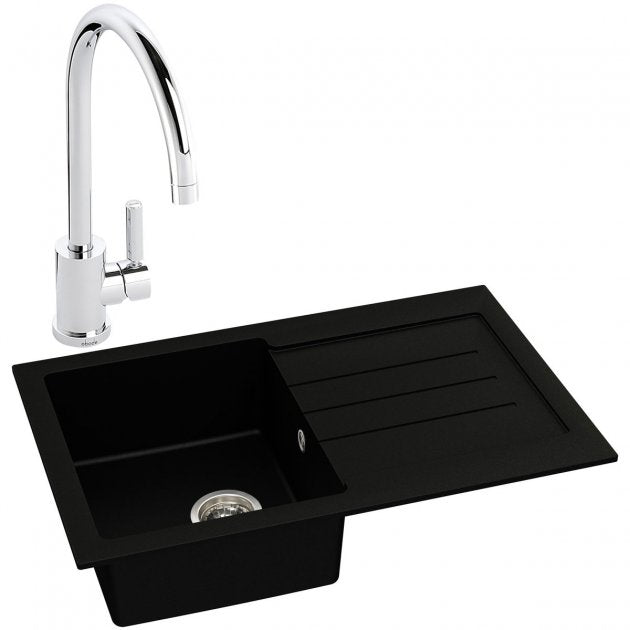Abode Xcite 1.0 Bowl Granite Kitchen Sink with Atlas Sink Tap 780mm L x 500mm W - Black Metallic