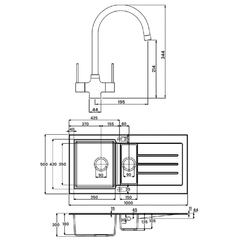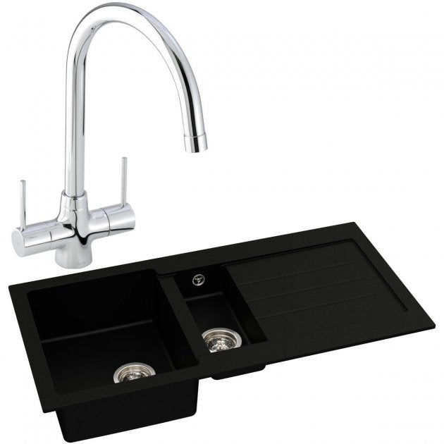 Abode Xcite 1.5 Bowl Granite Kitchen Sink with Nexa Sink Tap 1000mm L x 500mm W - Black Metallic