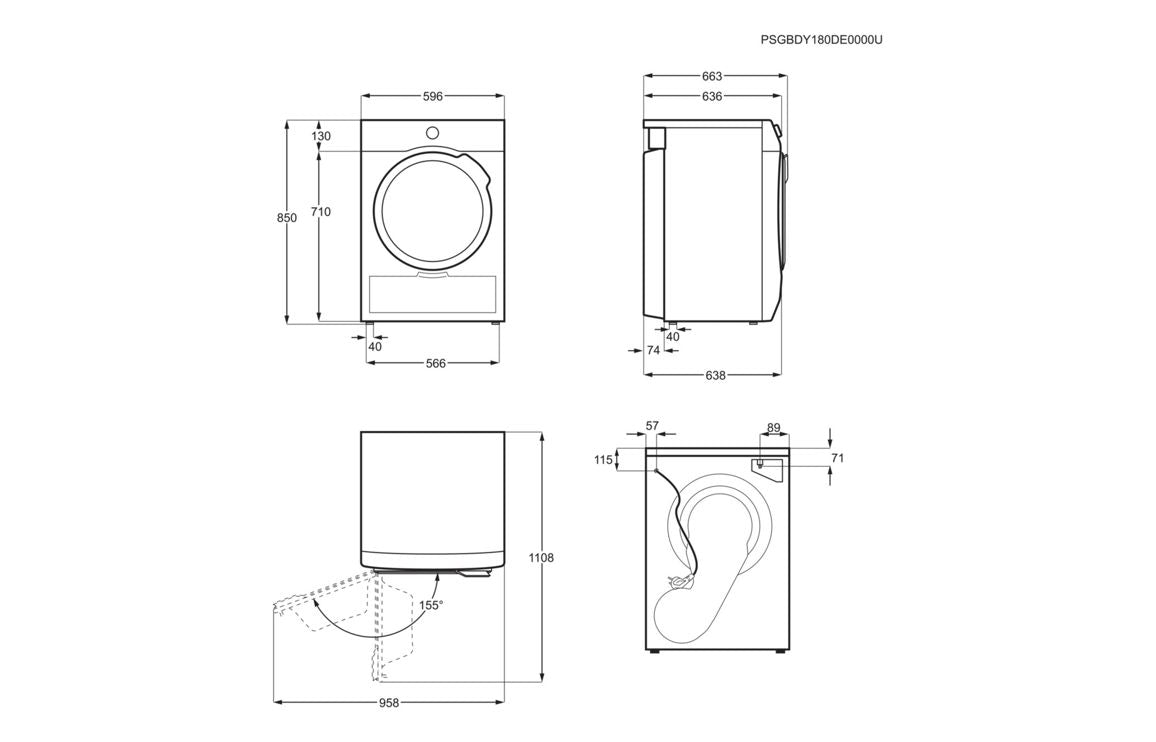 Dryer Type: Heat Pump Condenser – no external venting required
