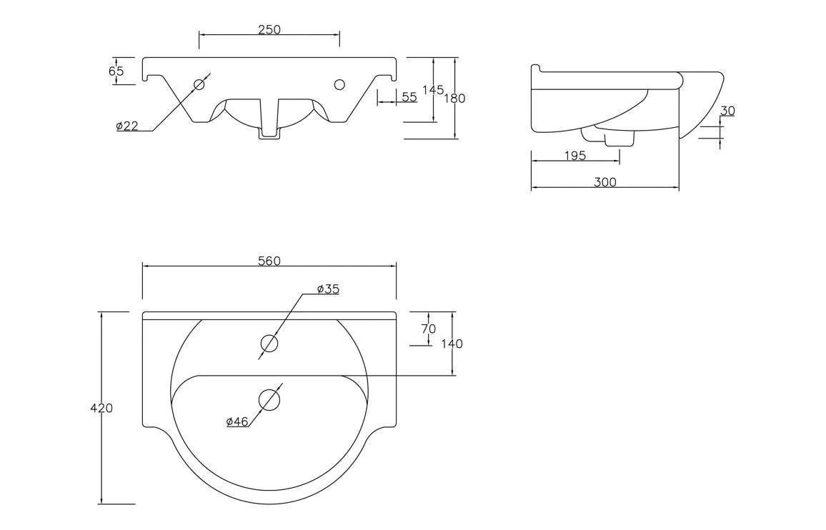 - WC Dimensions: H 831 x W 365 x D 647mm