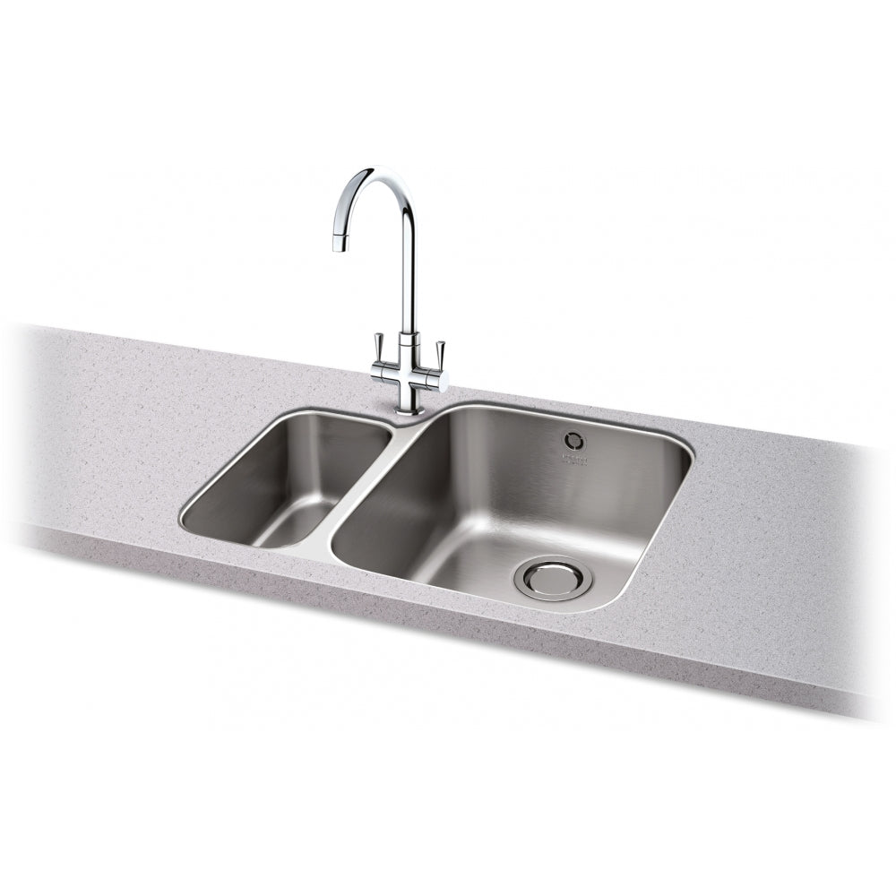 The Carron Phoenix IBIS 150U is a sleek, modern undermount sink designed for kitchens that want a clean, uninterrupted worktop finish with added functionality. The undermount installation creates a premium, seamless look ideal for quartz, granite, and solid‑surface worktops. Its 1.5‑bowl configuration supports multitasking, offering a dedicated prep or rinse bowl alongside the main bowl while maintaining a minimalist, contemporary aesthetic.