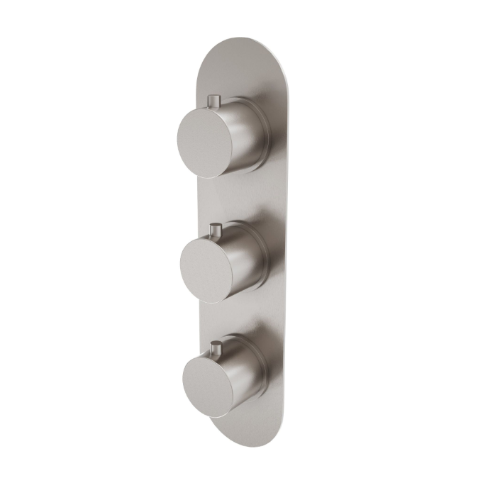 Ellie Round Triple Control Concealed Thermostatic Shower Valve With Dual Outlet - Brushed Nickel N24