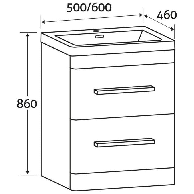 The floor standing design is super easy to install in your bathroom it easily and discreetly hides away any unsightly pipework. At just 500mm wide the compact design is just what is needed for bathrooms on the smaller side. The unit houses two deep and spacious soft close drawers which have been finished beautifully with contemporary brushed gold bar handles.