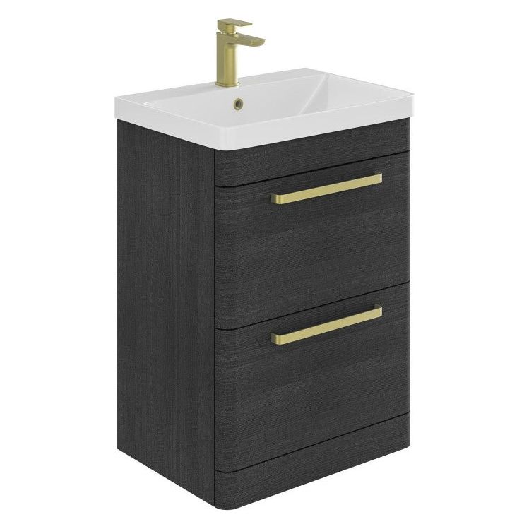 Elsa 500mm Floor Standing Vanity Unit & Basin in Textured Black with Brushed Gold Handles