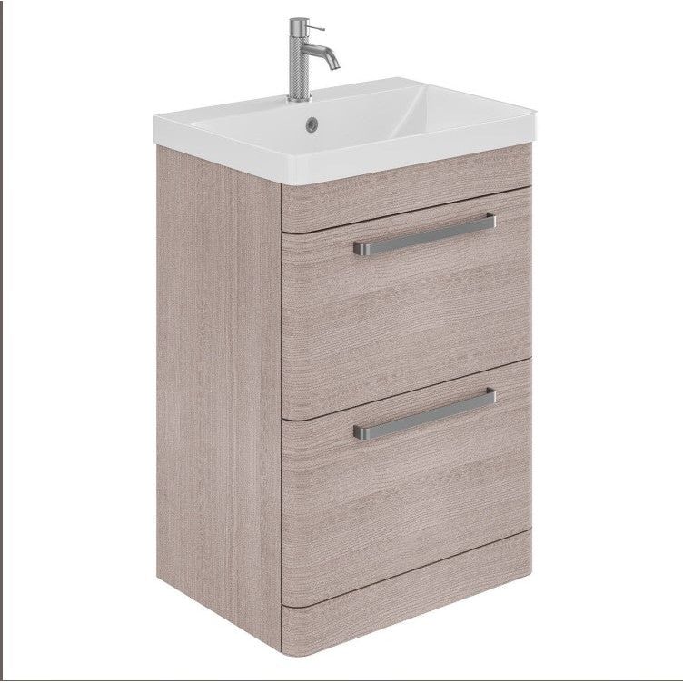 Elsa 600mm Floor Standing Vanity Unit & Basin in Stone Grey with Brushed Nickel Handles