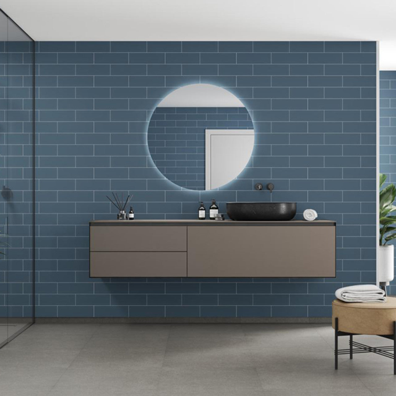 Design: Metro Brick effect with a dusty blue gloss finish, giving a sleek, contemporary look.