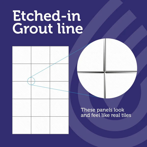 Grout Line: Etched into the panel (1.8mm wide, white grout) for a realistic tiled effect.
