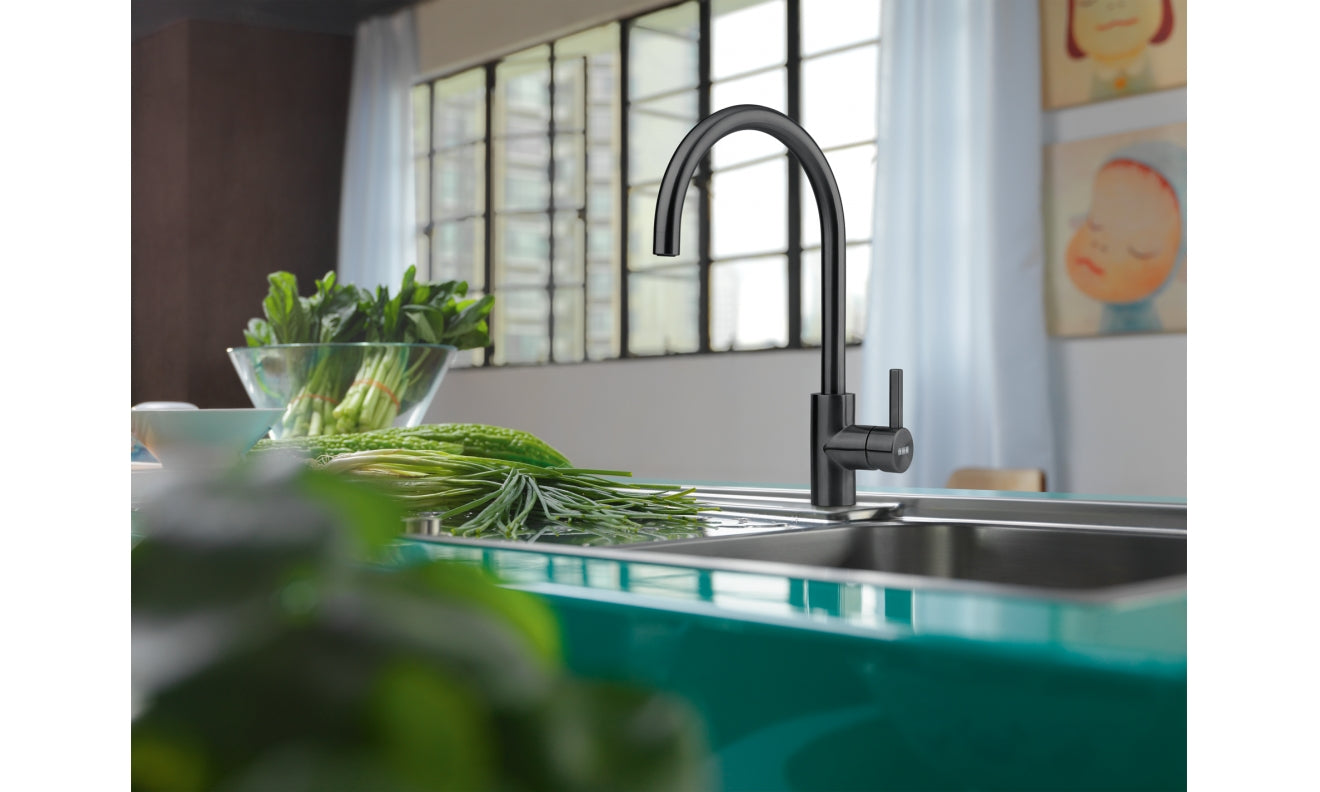 Franke Eos Neo Swivel Tap – Industrial Black Elevate your kitchen with the minimalist elegance of the Franke Eos Neo Swivel Tap in Industrial Black. Crafted from premium AISI 304 stainless steel, this tap features a smooth J-spout, side-mounted lever, and 180° swivel rotation for effortless everyday use. Its bold finish and refined silhouette make it a standout in contemporary spaces.