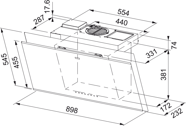 Vertical Wall‑Mounted Hood with a modern, angled black‑glass front