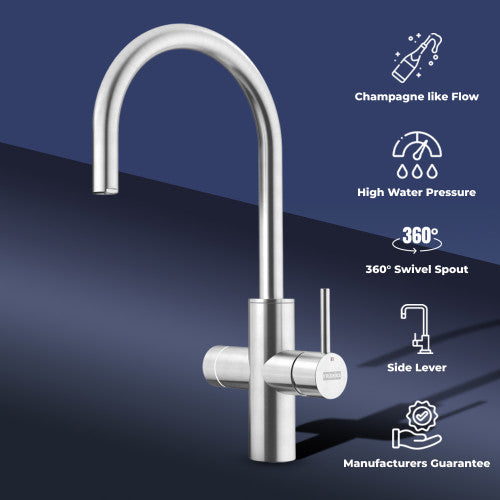 Franke Mythos Water Hub 6-in-1 Electronic Tap – Stainless Steel The ultimate all-in-one kitchen tap, the Franke Mythos Water Hub delivers six water types from a single, sleek unit: boiling, hot, cold, filtered chilled, filtered ambient, and filtered sparkling. Engineered in Switzerland and finished in brushed stainless steel, it combines smart technology with high-end design for modern kitchens.