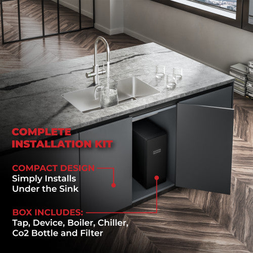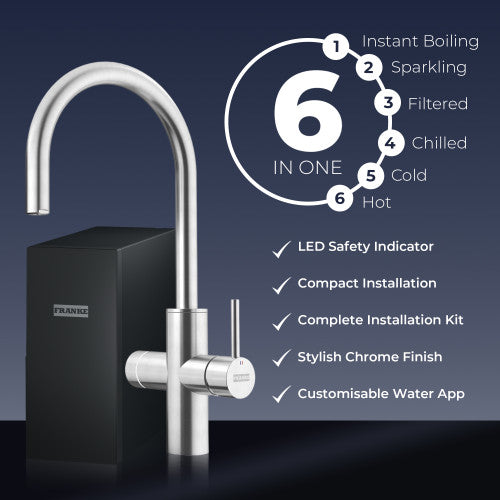 6-in-1 functionality: boiling, hot, cold, chilled, ambient, and sparkling filtered water