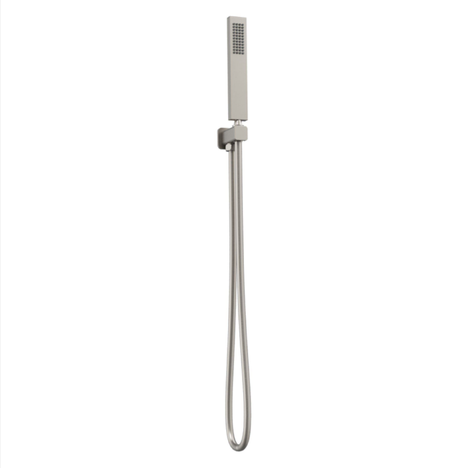 Our New Marge Square Shower Handset & Holder With Built-In Outlet is finished in Brushed Nickel and makes for a modern addition to any bathroom with its smooth and discreet design. Designed for both functionality and look, it's design complements any modern bathroom.