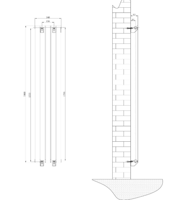 Due to the side location of the inlets on this radiator, angled radiator valves are required when your pipework comes from either the wall or floor.