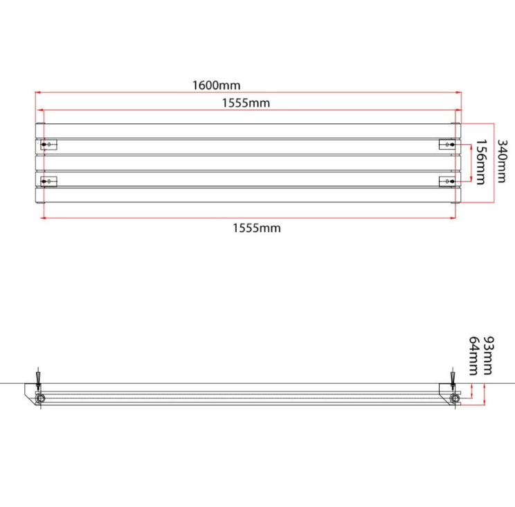 Michigan Grey Single Horizontal Flat Panel Radiator -340x1600mm