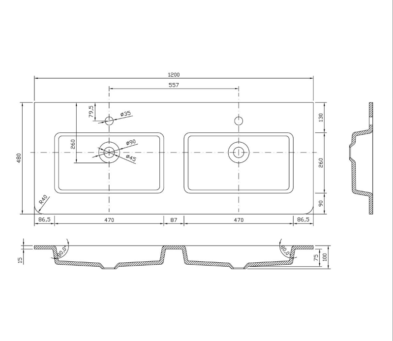 The unit features two soft close drawers which are specially cut to fit around pipework. Finished in a gloss white effect, the unit has a natural sense, ideal for creating a relaxing space. This floor standing vanity unit is complete with a double grey glass basin. Basin taps are not included, these need to be purchased separately.