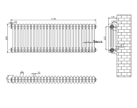 This radiator has been made from mild steel with a powder coat finish in grey. Standard ½ inch pipe threads have been used which are compatible with all our radiator valves.