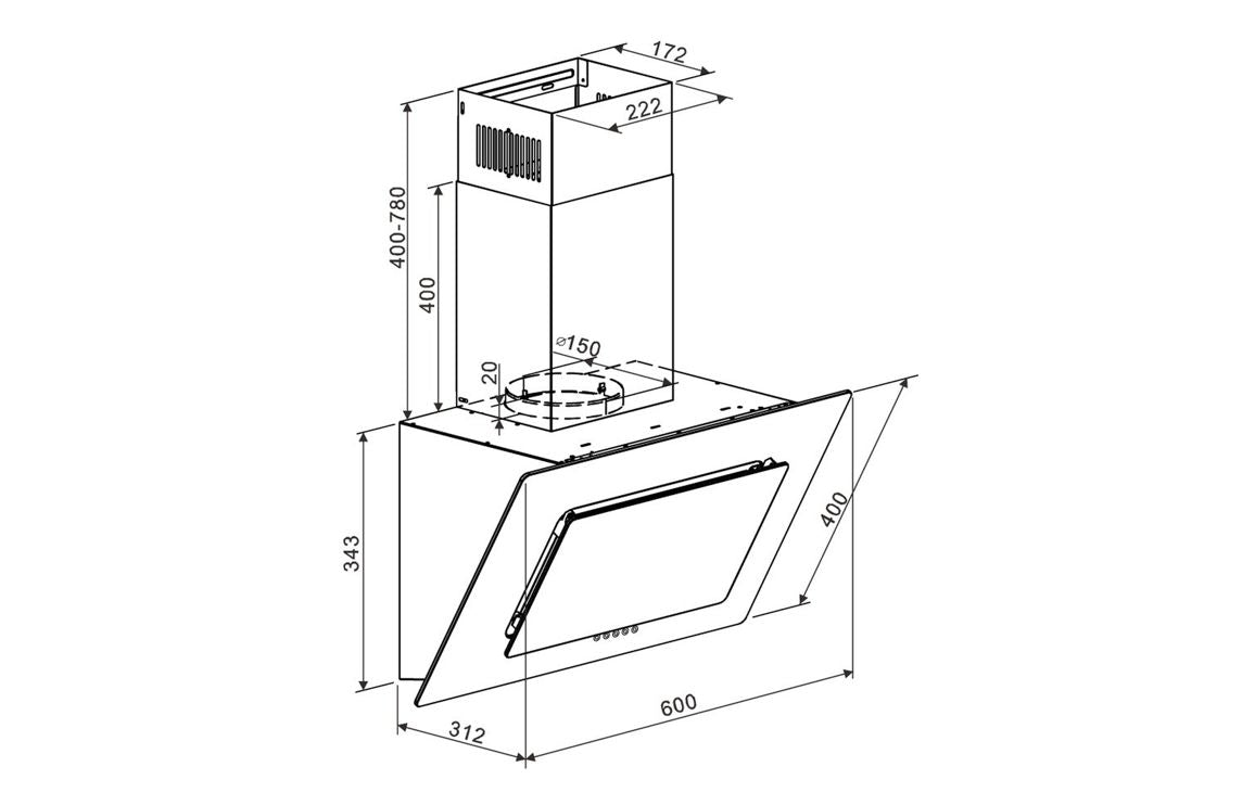 Upgrade your kitchen with the Prima PRAE0032—an elegant 60cm angled chimney hood finished in black glass. Designed to complement modern interiors, this wall-mounted extractor combines style with practicality.