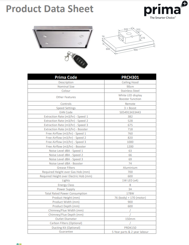 PRIMA+ 90CM CEILING HOOD PRCH301
