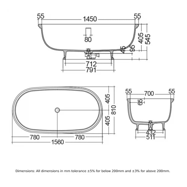 RAK Washington Freestanding Bath 1560mm X 810mm - Matt Grey