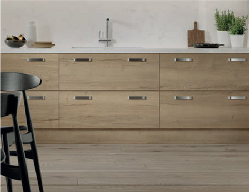 Introduce natural texture and modern warmth with the Linear Kitchen Range, designed to complement both contemporary and traditional interiors. With its woodgrain finishes and sleek profiles, this range brings a sophisticated touch to any renovation.