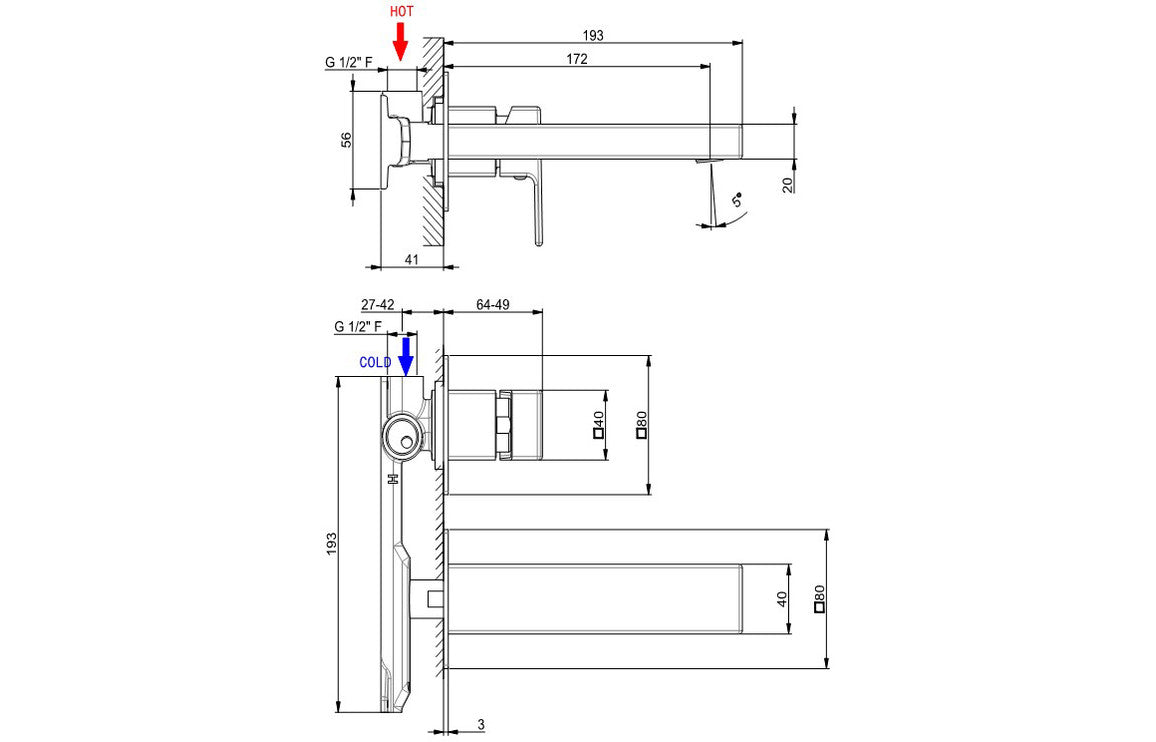 The Vema Lys Wall Mounted Basin Mixer in chrome brings sleek Italian styling to the bathroom, combining minimalist form with high-pressure performance. Designed for wall-mounted installation, it offers a clean, contemporary look that complements modern basins and interiors.