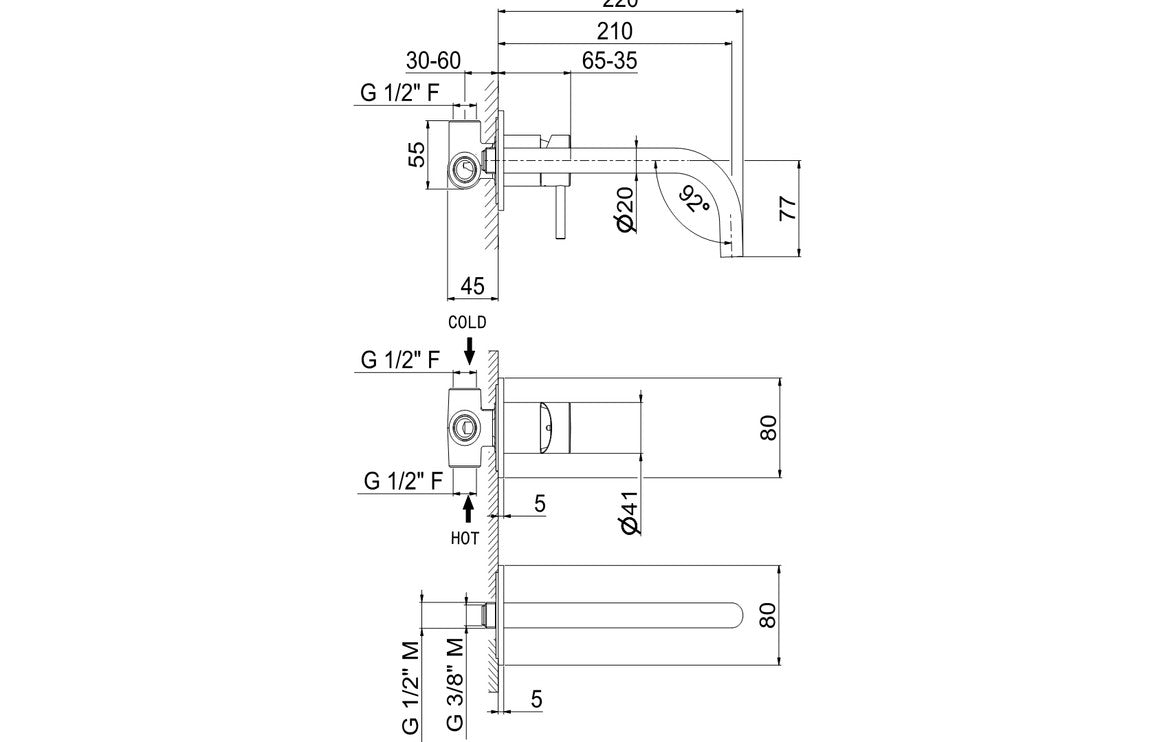 Vema Maira Wall Mounted Basin Mixer – Matt Black | DITS1230