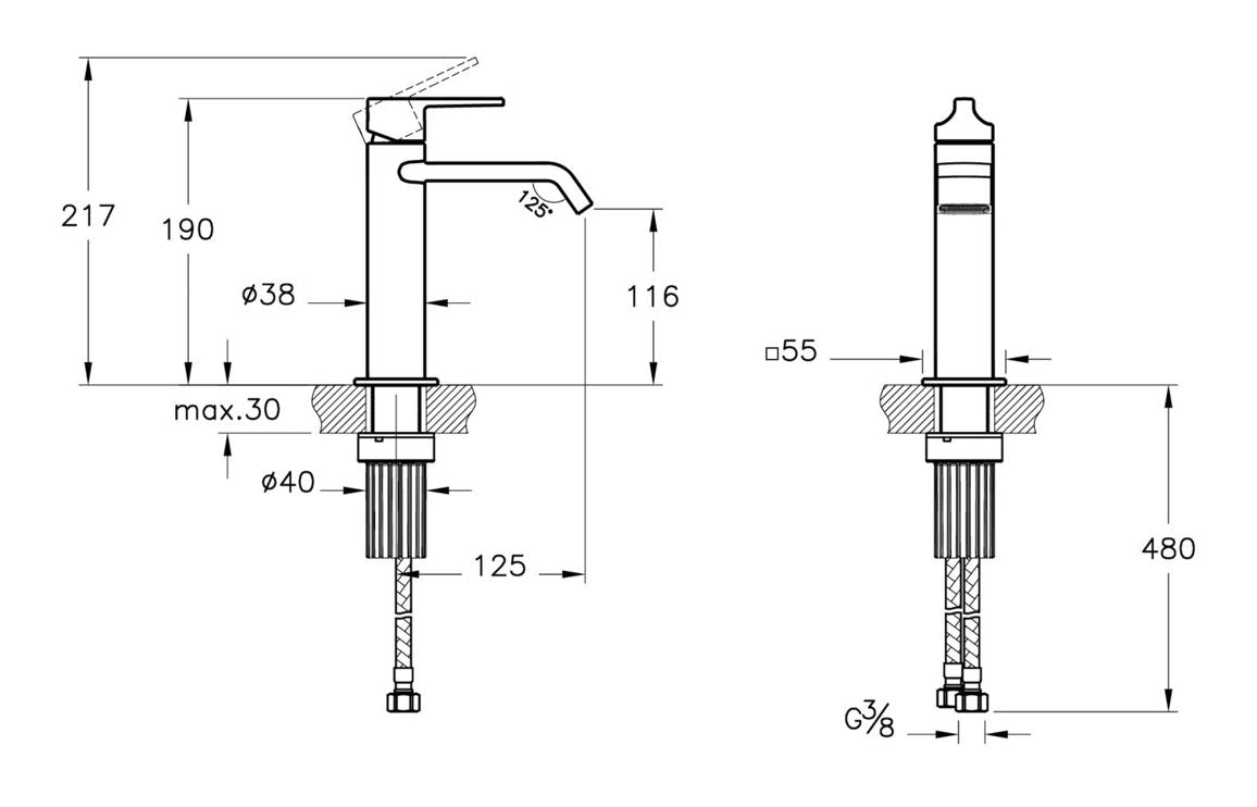 Spout Reach: 125mm