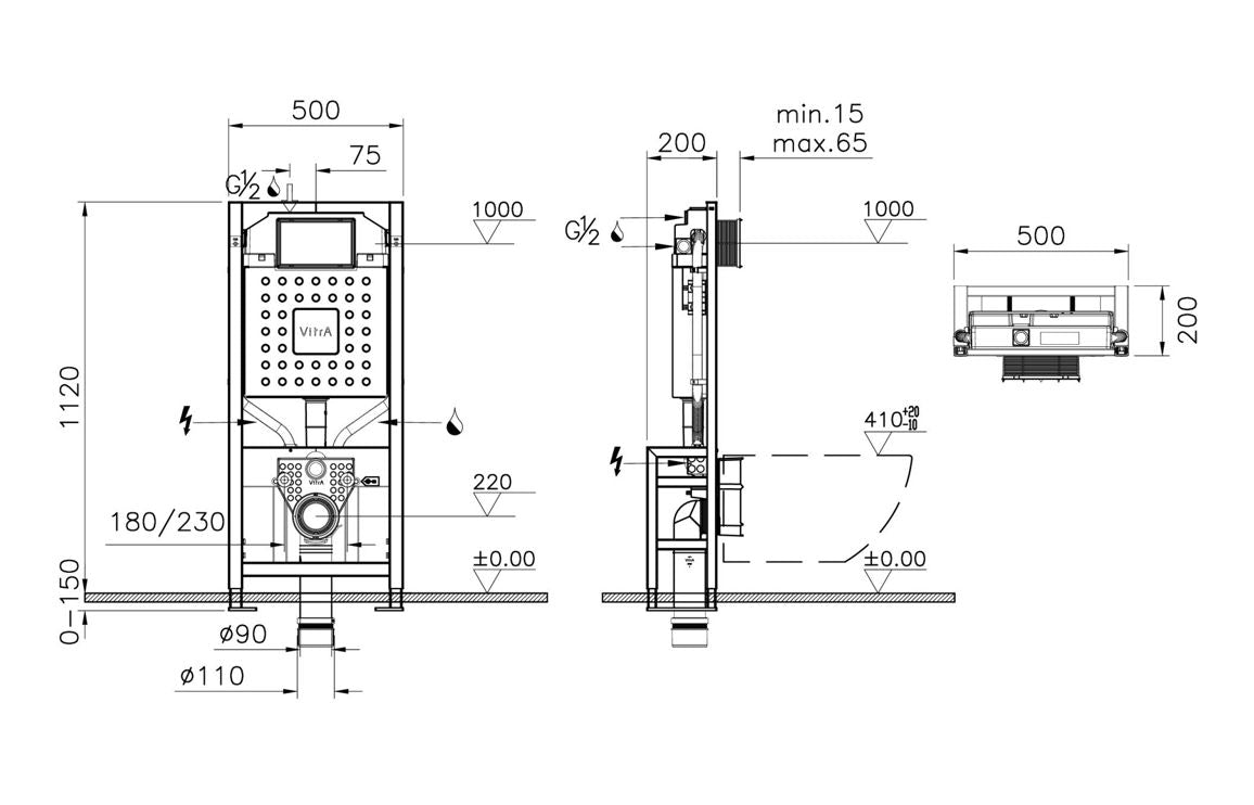 Reliable Support. Smart Compatibility. Floor-Fixed Stability. This VitrA V-Fix Prime WC frame is engineered for floor-mounted installation, offering robust support for wall-hung toilets. Featuring a 12cm dual-flush cistern and integrated electric and water connection points, it’s ideal for smart toilet setups and high-performance bathroom installations.