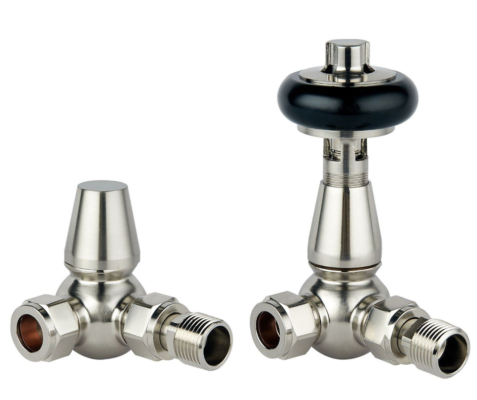 Wooden Head Corner Pair of Radiator Valves - Satin Nickel N24